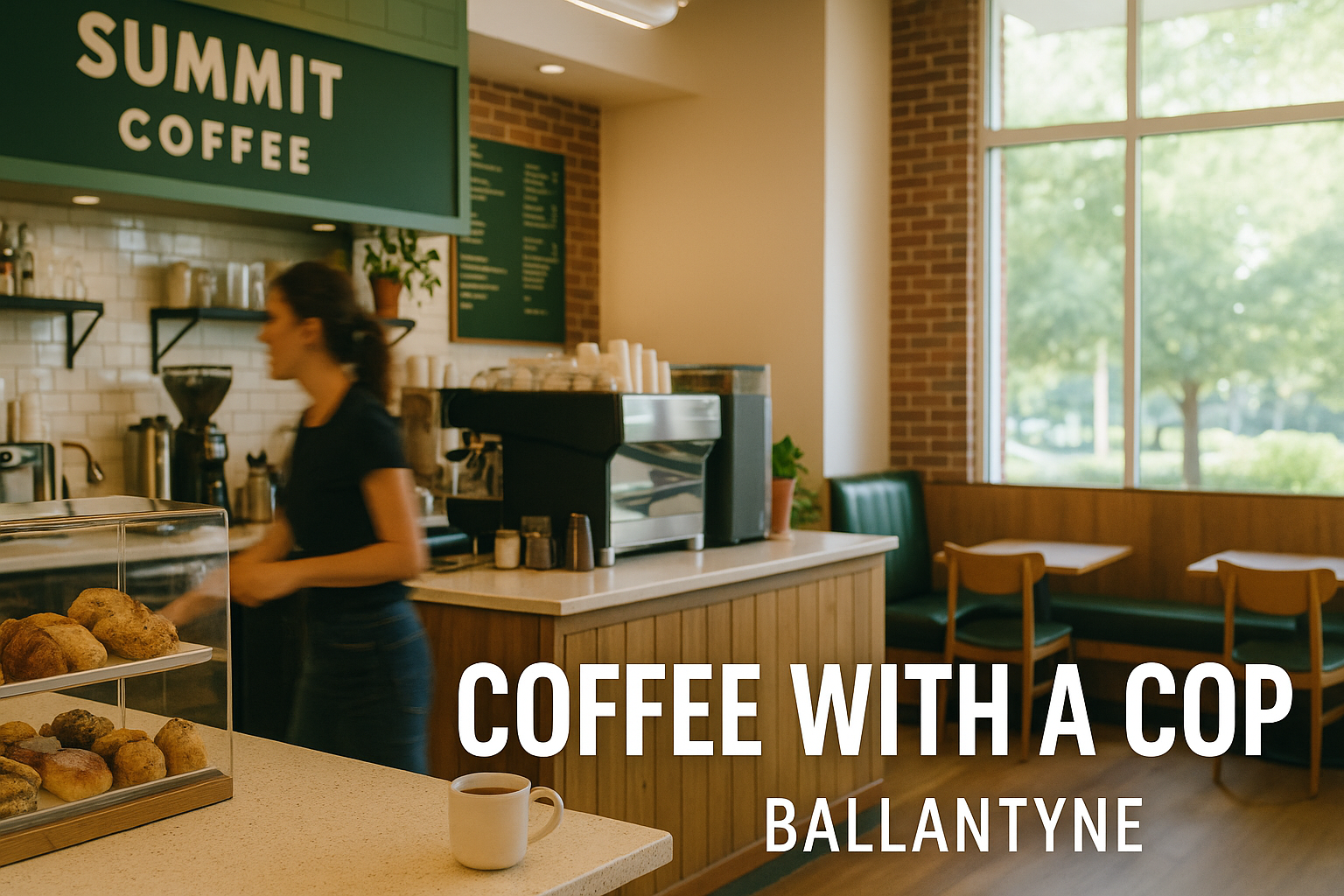 Ballantyne residents can meet CMPD officers for Coffee with a Cop on December 12 from 9–11 AM at Summit Coffee. A toy basket will also be available for families recovering from Hurricane Helene.