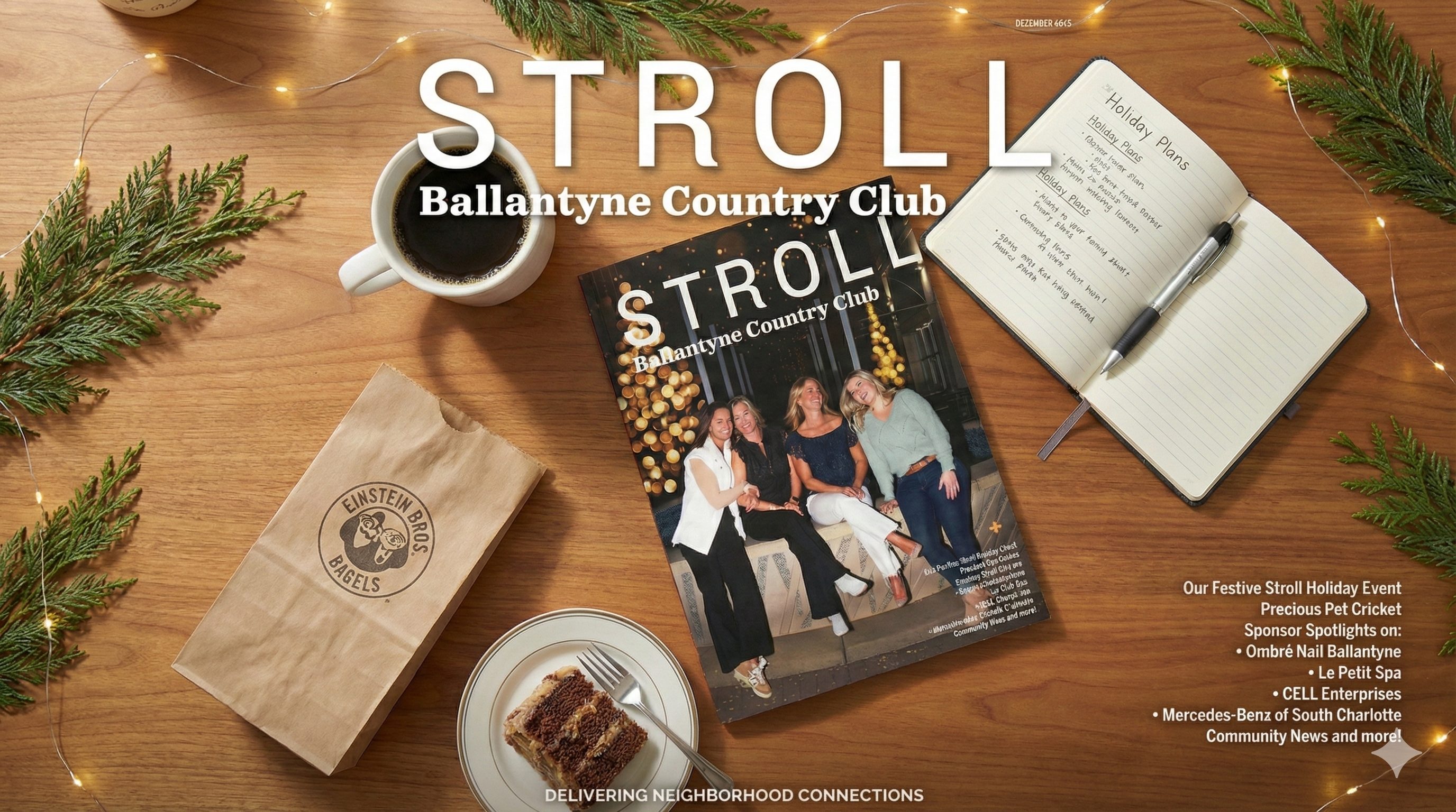Take a guided walk through Stroll Ballantyne Country Club’s December 2025 issue, from the Holiday Mixer at Zinicola to Cricket the dog, Elle the athlete, and anchor partners across the neighborhood.